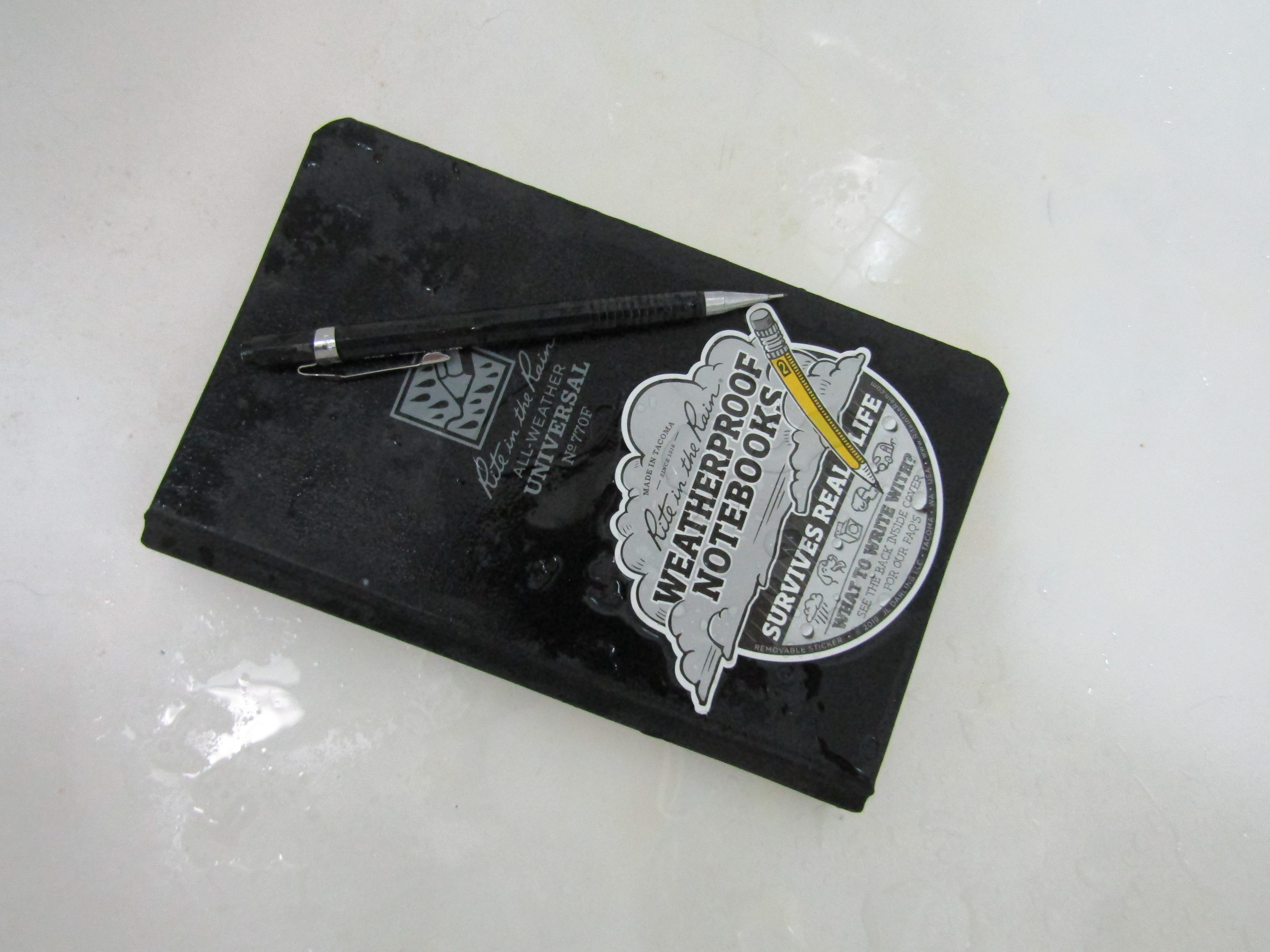 Now, disregarding most of what I just said about pens and dry and cheap composition books- I keep a second notebook in the shower.